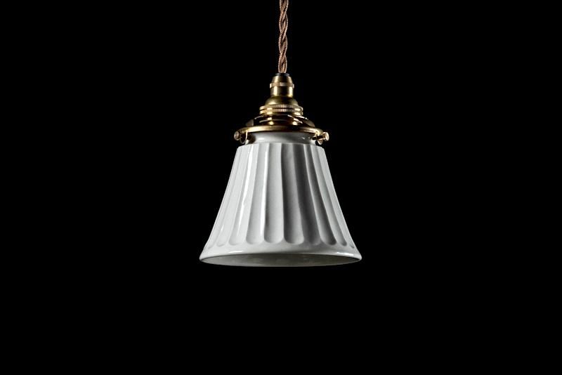 阿部春弥さんのランプシェードは磁器製ですので透光性があり、点灯すると電気の明かりが透けて表情に変化が生まれます。