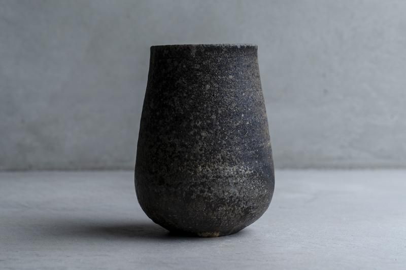 焼しめ花入れ