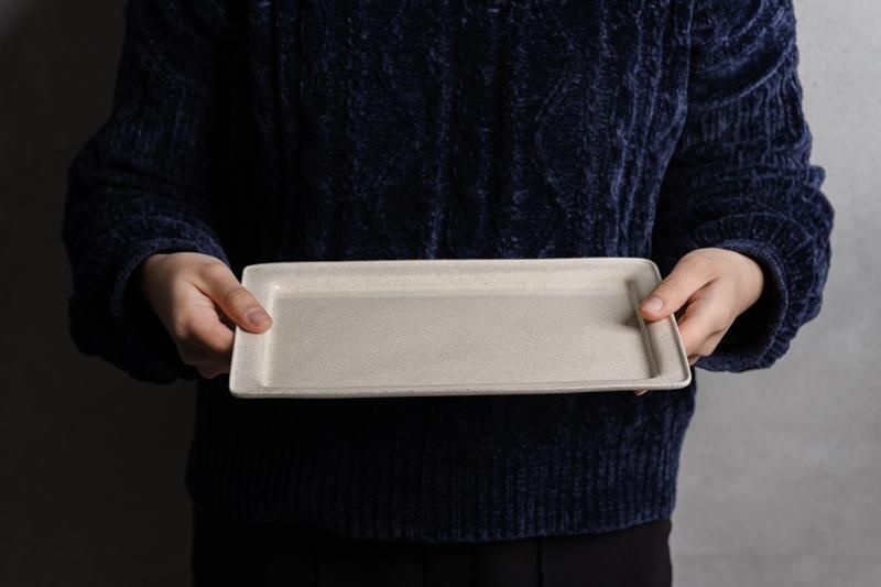 フラットでリムが立ち上がった長皿です。メインのプレートや前菜などに。