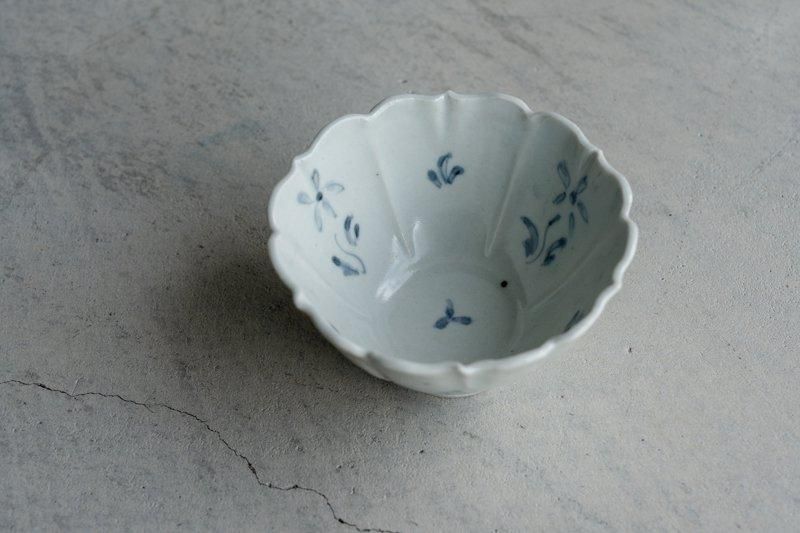 このお皿のリムに刻まれた陽刻が深い瑠璃色をより印象的に映し出します。